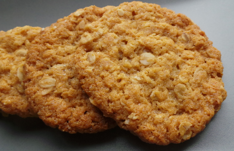 Anzac signifie « Australian and New Zealand Army Corps ». Pendant la première guerre mondiale, ces biscuits étaient envoyés aux soldat par leur femme car ils pouvaient se conserver longtemps et ne souffraient pas du transport. La recette a un peu évolué depuis et le résultat est une réussite.